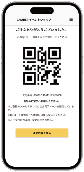 注文完了QRの読み込むでご注文情報を確認。
