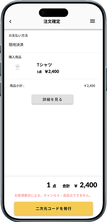 QRを読み込むと、注文情報を確認できます。