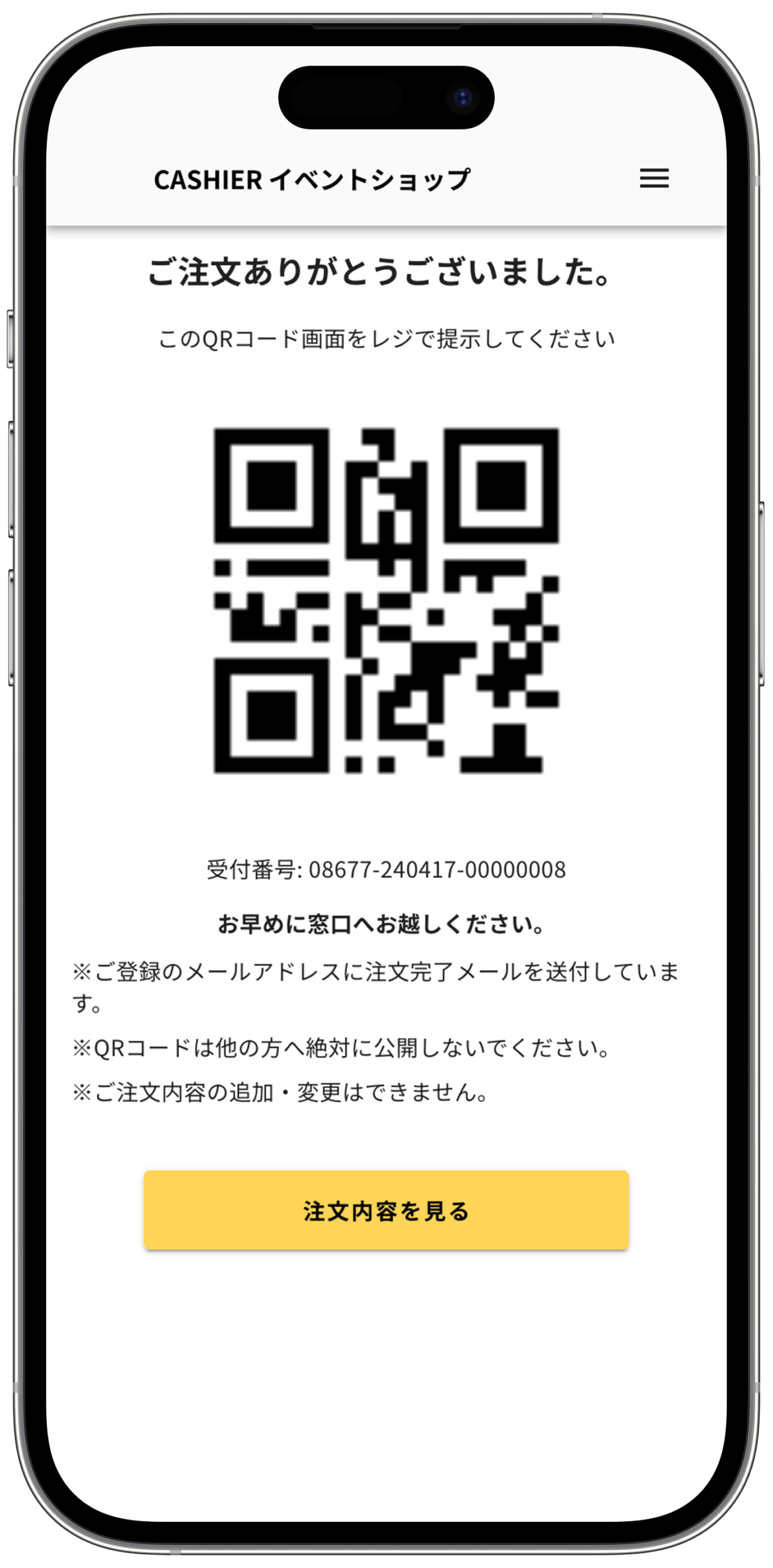商品の購入が完了すると、 商品引き換え用のQRコードが購入者宛にメールで送られます。